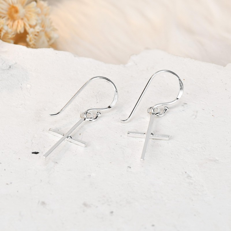 AeraVida Simple Skinny Cross .925 Silver Dangle Earrings | Cross Earrings for Women | Sterling Silver Dangle Cross Earrings | Womens Cross Earrings