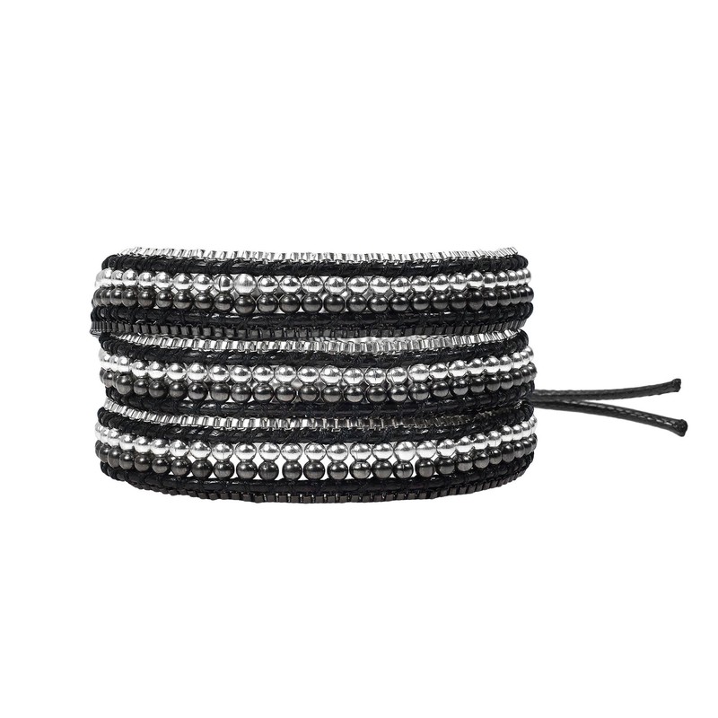 AeraVida Stylish Native Black and Silver Plated Base Two-Tone Wrap Bracelet