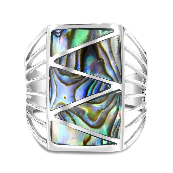 AeraVida Timeless Stripe Line Zig-Zag Abalone Shell .925 Sterling Silver Ring | Elegant Abalone Inlay Sterling Silver Ring for Women