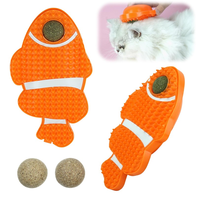 - Charming Fish-Shaped Design: Our adorable fish-shaped Cat Self-Groomer and Face Brush is designed to capture your cat's attention and keep them entertained. The surface-mounted catnip ball encourages your furry friend to rub against it more often, adding an element of fun to their grooming routine