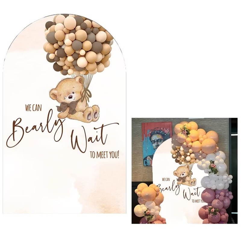 Aerdce Teddy Bear Arch Backdrop 2.5x6ft We Can Bearly Wait to Meet You Arched Wall Covers Stretchy Background for Party Decorations Brown Baby Shower Decor Props NO-78