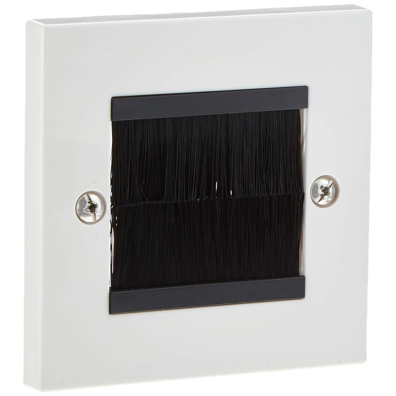 Aerials, Satellites and Cables White Cable Entry/Exit Brush Faceplate for Wall Outlet-Single Gang
