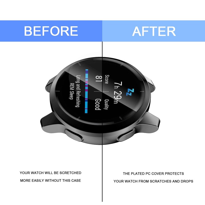 - All-round protection: the protective case for Garmin Venu 2 45MM provides full protection from the screen, four sides up to the corners. Slightly higher edges protect your watch surface and protect your watch from scratches, bumps and accidental drops.