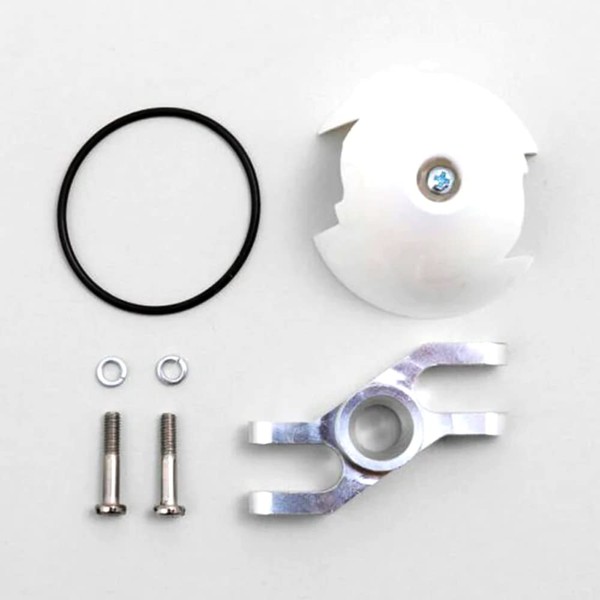 The Z-spinner contains a spinner cap (diameter 42 mm) made of white plastic (very easy to paint), milled aluminium centre piece with integrated holder for clamping cone, special prop rubber for folding the propeller blades, mounting screws for spinner cap and propeller blades.