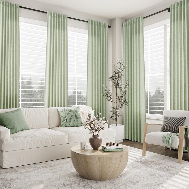 - Upgraded Linen Fabric: Our mist sage linen cutains are crafted from upgraded natural linen and imported polyester blended fabric, which possesses more flax linen fibers than other normal linen curtains. Richer linen texture brings a delicate look and a natural cozy feeling. The poly-linen combination is a more cost-effective option, with greater durability and wrinkle resistance
