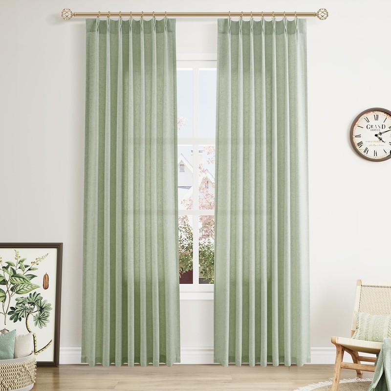 Aersas Mist Sage Pinch Pleated Linen Curtains 84 Inch Length 2 Panels for Living Room Bedroom Semi Sheer Window Curtain Boho Neutral Back Tab Pinch Pleat Drape with Hooks 40x84