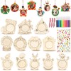 AerWo 24 Pcs Unfinished Wood Christmas Picture Frame, 12 Styles DIY Christmas Photo Frame Tree Wooden Ornaments to Paint with Colored Marker Sticker & Ropes, Funny Christmas Craft Kits for Kids Adults