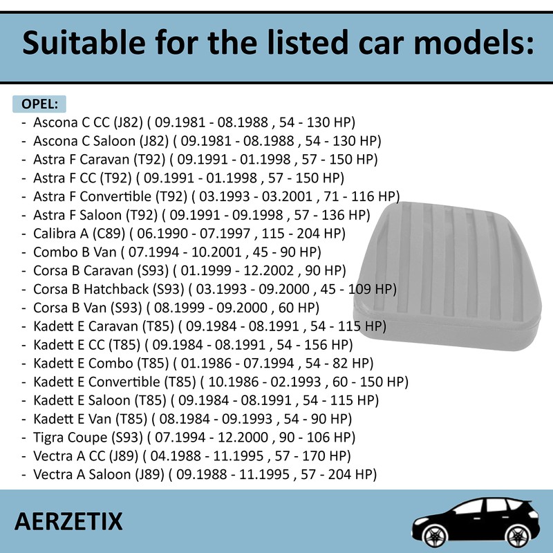 AERZETIX - C10132 - Clutch Pedal Pad - Compatible with Opel Astra F, Corsa B, Kadett E - 0560808, 560808 Vauxhall and Daewoo 90105172 - Rubber - Pedal