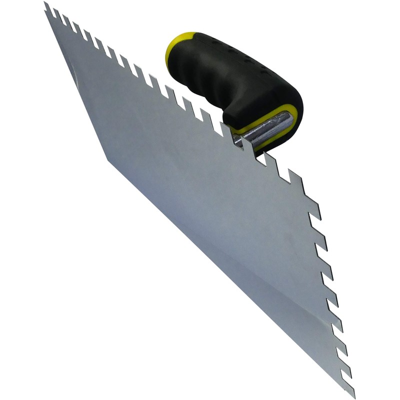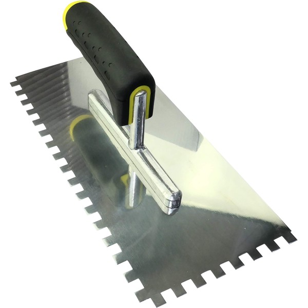 - Equipped with a bi-material handle, you would have better hand control and unparalleled control while working. Thanks to its optimal performance and endurance, the trowel is often used, preferred and sought after by professional craftsmen and DIY enthusiasts. The tooth spatula is used by tilers for spreading/smoothing glue, plaster, mortar and applying plaster