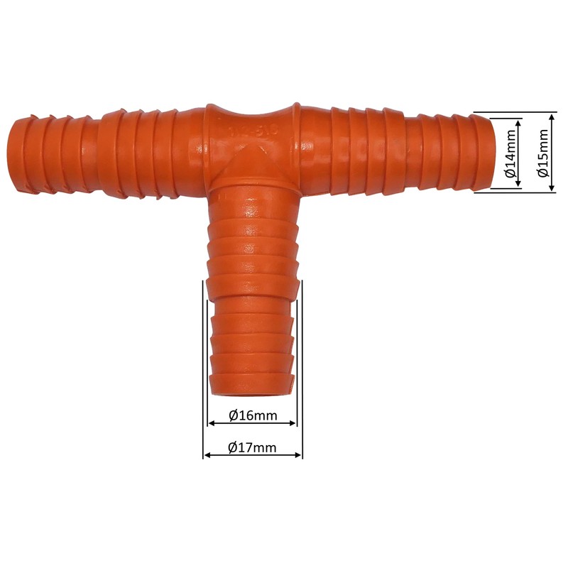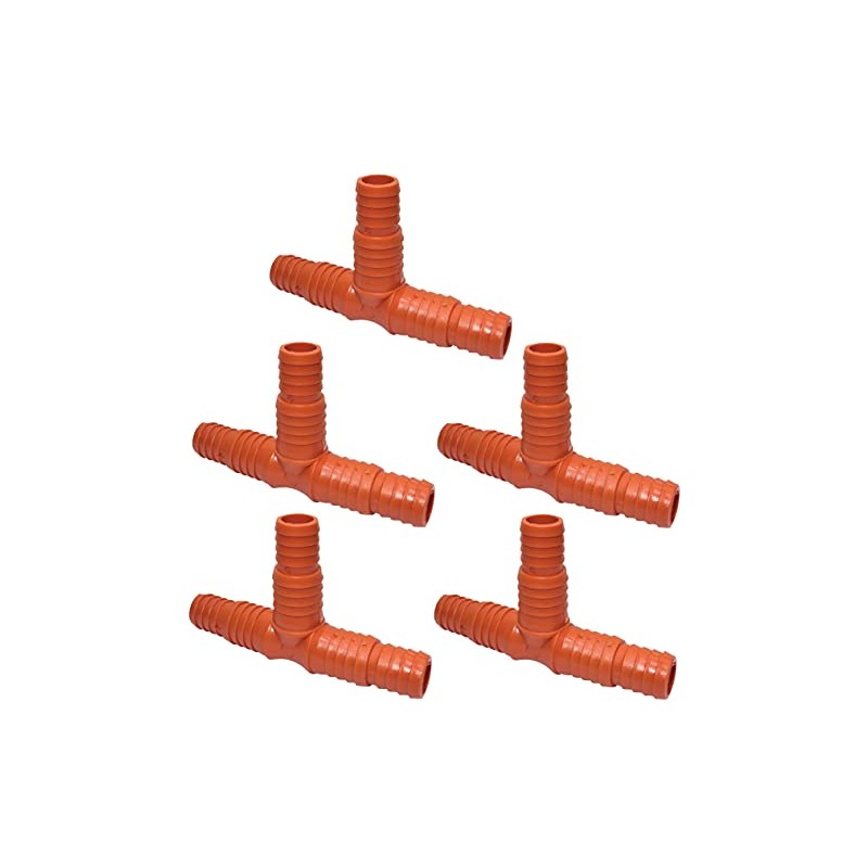 - This T Fitting is the perfect and durable solution for connecting multiple garden hoses. This set of 5 barbed connectors is an essential part of an automatic drip irrigation system. You can connect 3 pipes of a network to build 2 autonomous water pipes. Essential for organising your watering system as it immediately reacts to your needs for an example plantation