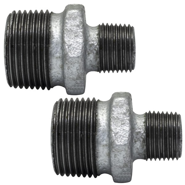 AERZETIX - C65081 - Set of 2 sleeve reducers galvanised - male/male 1/2 inch x 1 inch made of cast iron - pipe screw connection with thread - sanitary heating work drinking water supply