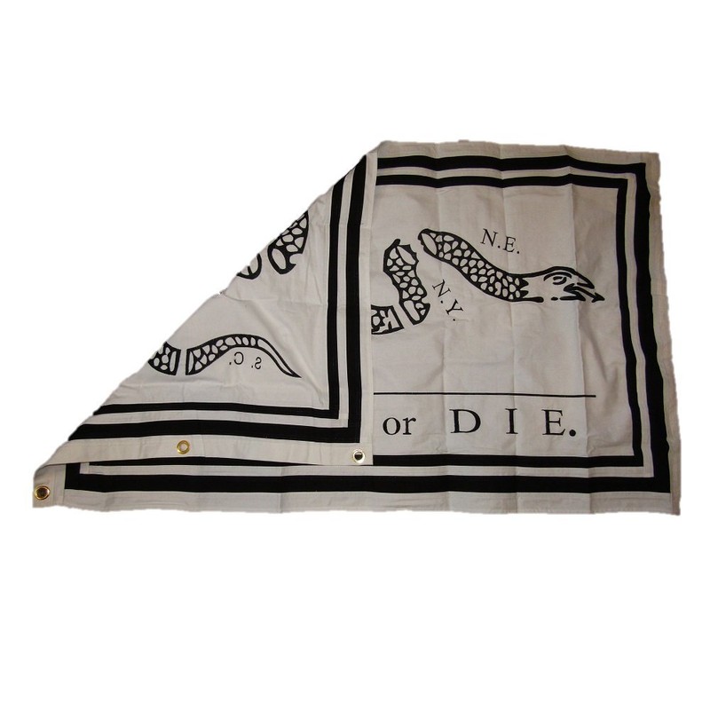 AES 3x5 Embroidered Sewn Join Or Die Benjamin Franklin White Cotton Flag 3'x5' (100% Cotton)