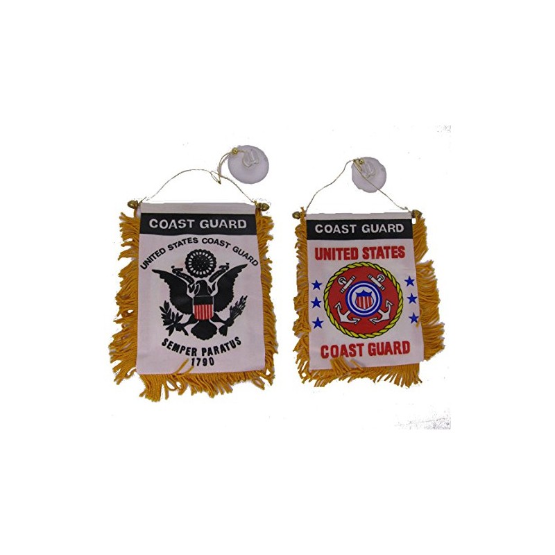 USCG Coast Guard Double Sided Mini Flag 4"x6" Window Banner w/ suction cup