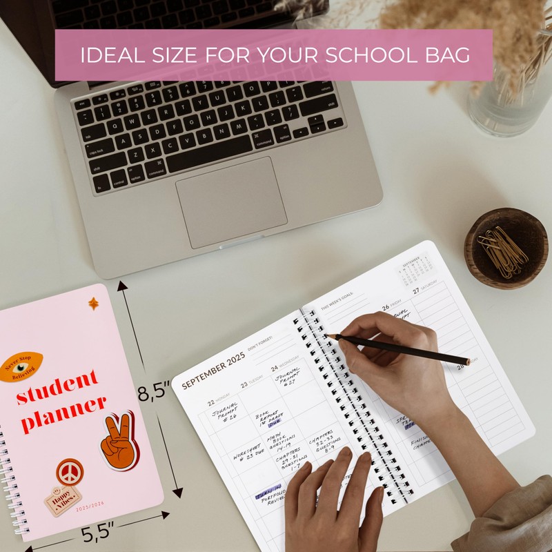 - Stylish Design & Perfect Size: Beautiful in a cute pink color, with a soft feel, robust hardcover, sturdy spiral binding and ideal size of 8.5x5.5”, the student planner for high & middle school is truly made for everyday use, fitting neatly into any bag