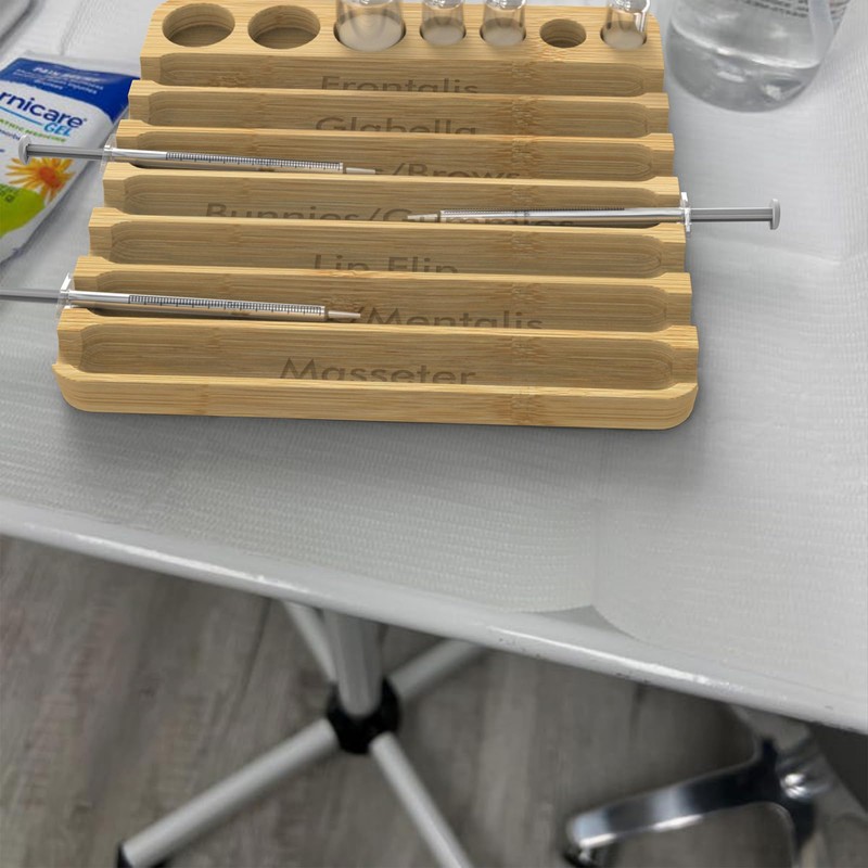 Aesthetic Practitioner Syringe Tray with Vial Holder, Bamboo Vial Holder Syringe Tray for 2-in-1 Combination, Syringe Storage Organizer for Aesthetic Practitioners and Small Vial Racks