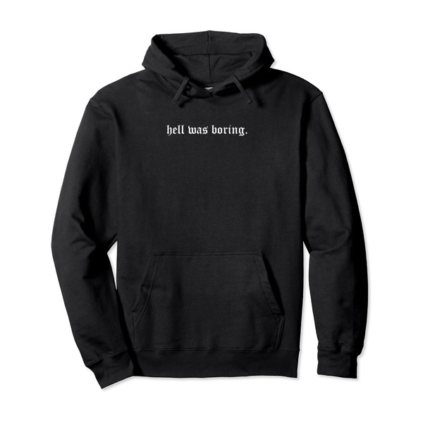 Aesthetic Quote Pullover Hoodie with German Text "hell was boring" (White)
