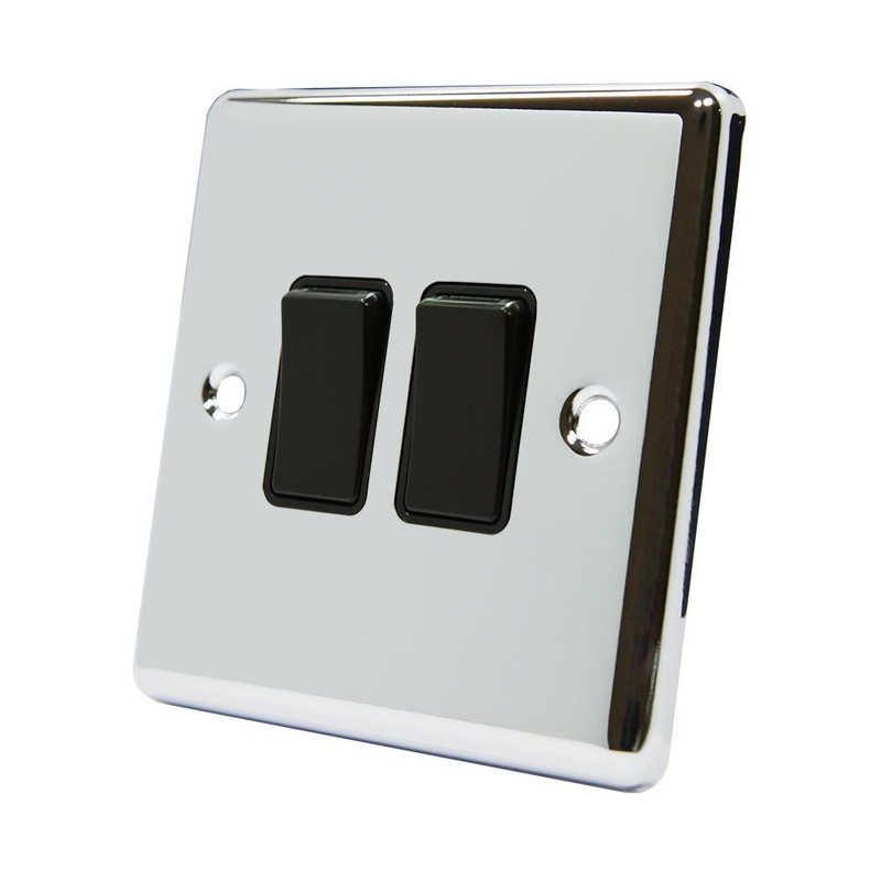 AET CPC2GSWIBL Polished Chrome Classical Black Insert Plastic Rocker Switches-10 Amp Double 2 Gang 2 Way Light Switch, 240 V