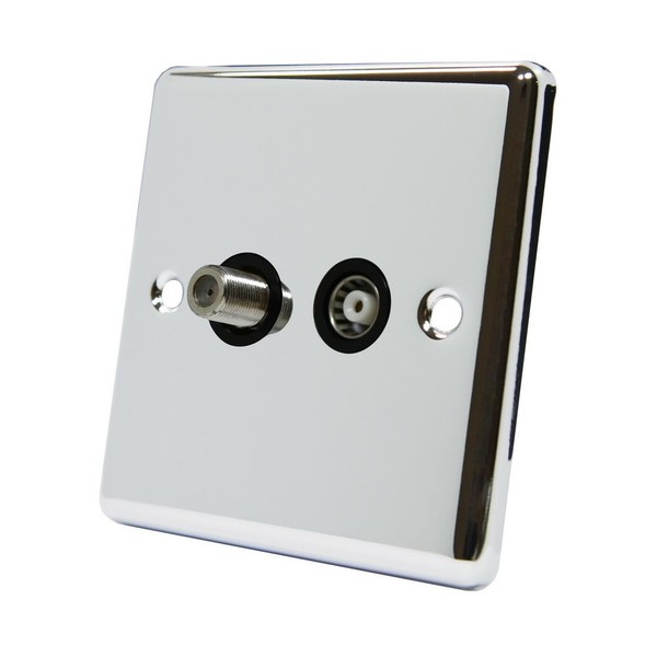 AET CPCTSSBL Polished Chrome Classical TV & Sky Black Insert-Coaxial and Satellite Socket, 240 V