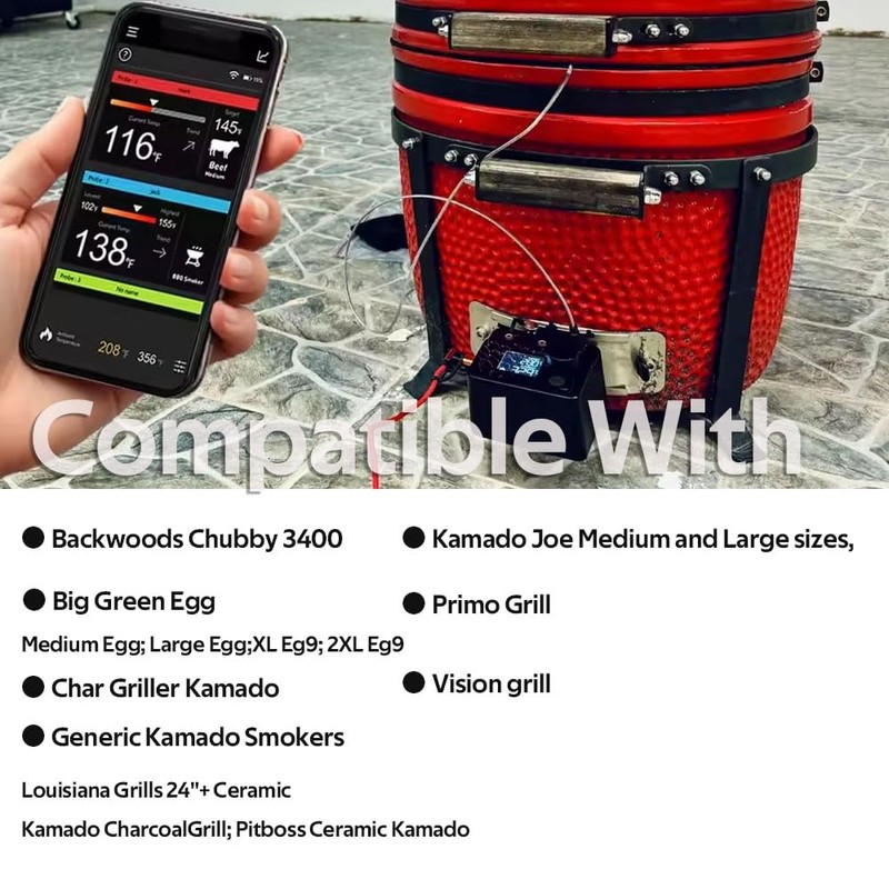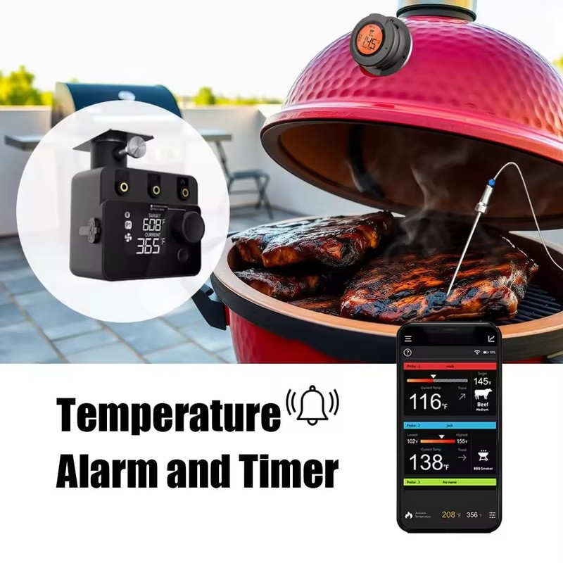 - Intelligent temperature control - This automatic temperature controller with a built-in fan uses a smart PID algorithm to maintain a steady temperature without manual adjustments, ensuring perfect BBQ results.