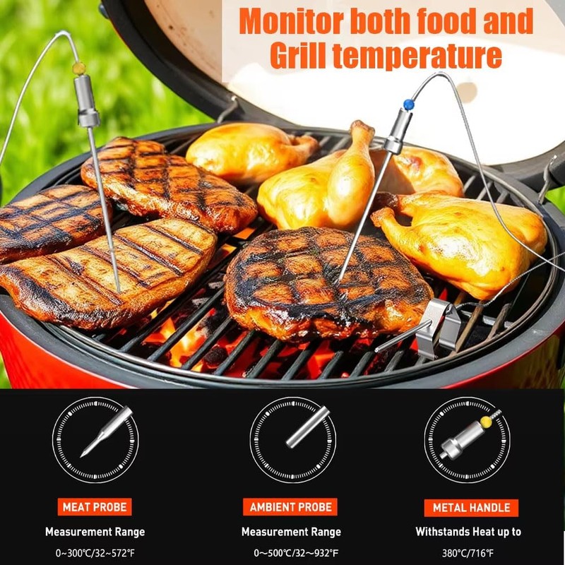 - Accurate Measurement and Alarm: Its 2 food-grade stainless steel probes all feature high measurement accuracy of 0.5/0.9H and support temperature calibration