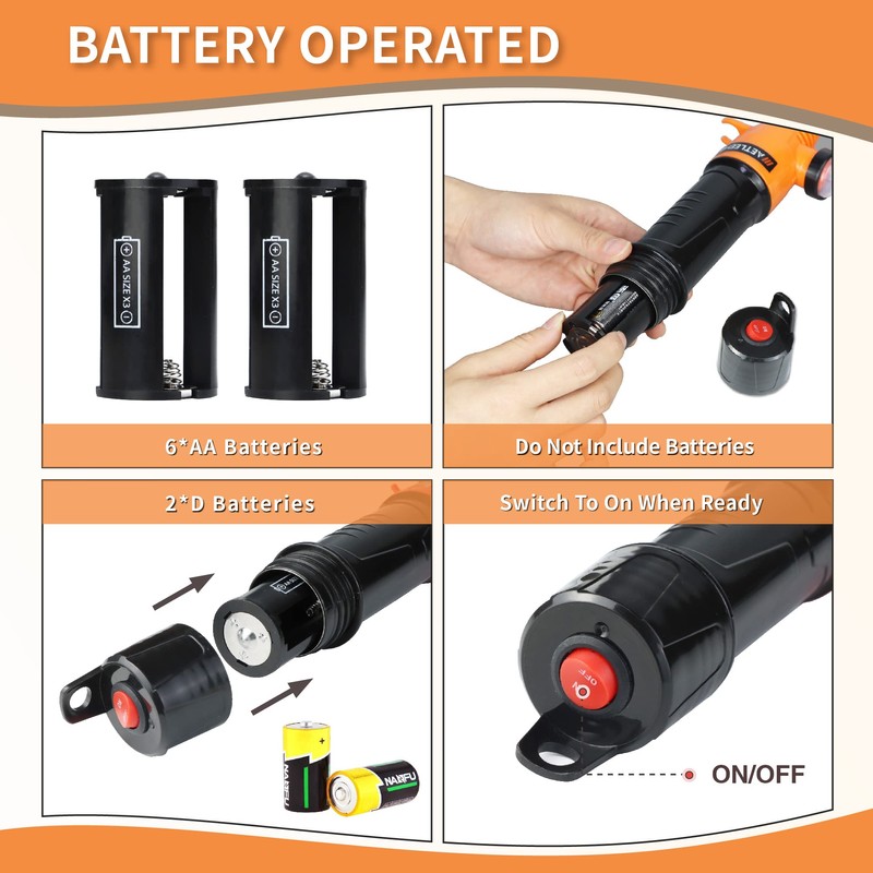 - 【Portable and Convenient】: Equipped with a battery conversion device, you can choose to use 2 D batteries or 6 AA batteries (BATTERIES NOT INCLUDED). 2 AA battery can also be used but slow(When you don't have enough battery).