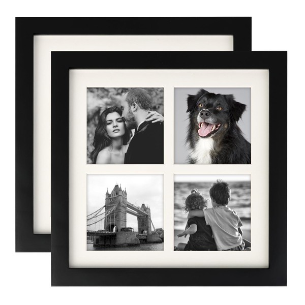 AEVETE 3x3 Picture Frame Collage 4 Opening 8x8 Picture Frames Black 2 Pack for Wall Desk