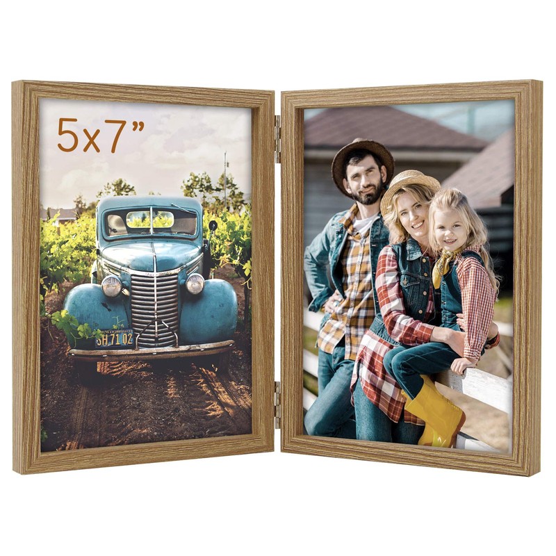 - 【Hinged Picture Frames】Suitable for two 5x7”photos side by side. Frames are stably connected with stainless steel hinges, can be 180° folded.