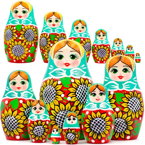 AEVVV Russian Nesting Dolls Set of 7 pcs - Matryoshka Nesting Dolls in Sunflower Sundress for Women - Russian Dolls Nesting Dolls with Sunflower Decorations