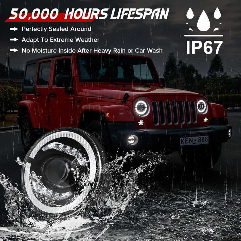 - 【Easy Installation】No modification is needed for this plug-and-play device, and installation can be effortlessly accomplished in just 10 minutes. It is the ideal replacement for original components. To install, simply unscrew the bolts around the headlights and replace with the new light assembly.(for a perfect fit, use original stock screws).Please note that for JK 2017-2018 equipped with OEM LED headlights, a headlight bracket is required for installation (Not included in the package and must be purchased separately).