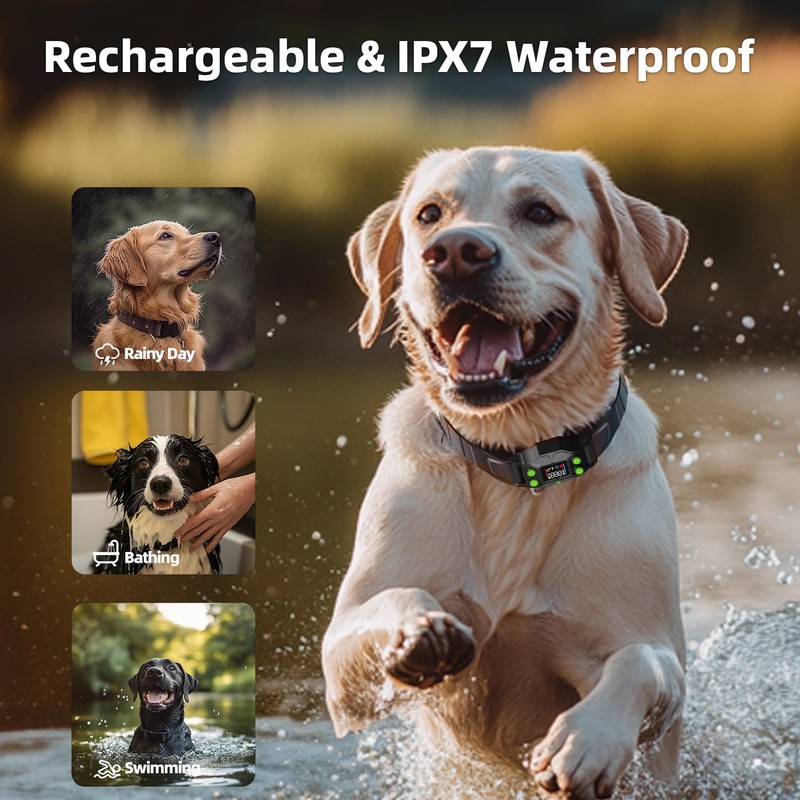 - 【Waterproof and Durable Collar】IPX7 waterproof design makes the collar suitable for rain, snow, swimming, and sunny days. Built-in rechargeable battery charges in 2 hours provide 24–36 hours of working time
