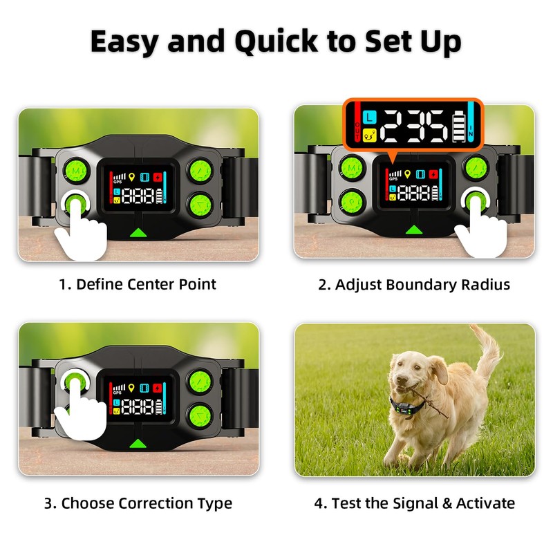 - 【Adjustable Boundary Range from 25 to 999 Yards】Set the boundary radius of the waterproof dog collar according to your needs, covering from 0.4 up to 647 acres. Compared to other systems with a minimum 33-yard range, our GPS fence allows a more precise 25-yard minimum radius, giving your dog safer and more flexible outdoor freedom