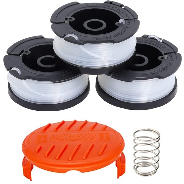 AF-100 String Trimmer Spool Replacement for Black and Decker 30ft 0.065" Refills Line Auto Feed Single Weed Eater,GH600 GH900 Edger with RC-100-P Spool Cap Covers (3 Spools, 1 Cap,1 Spring)