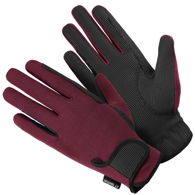 AF Equestrian AFE Ladies Horse Riding Gloves Track Fabric Gloves Synthetic Leather Equestrian Black Stretch Fabric Pink Purple Lilac Grey Burgundy (Medium)