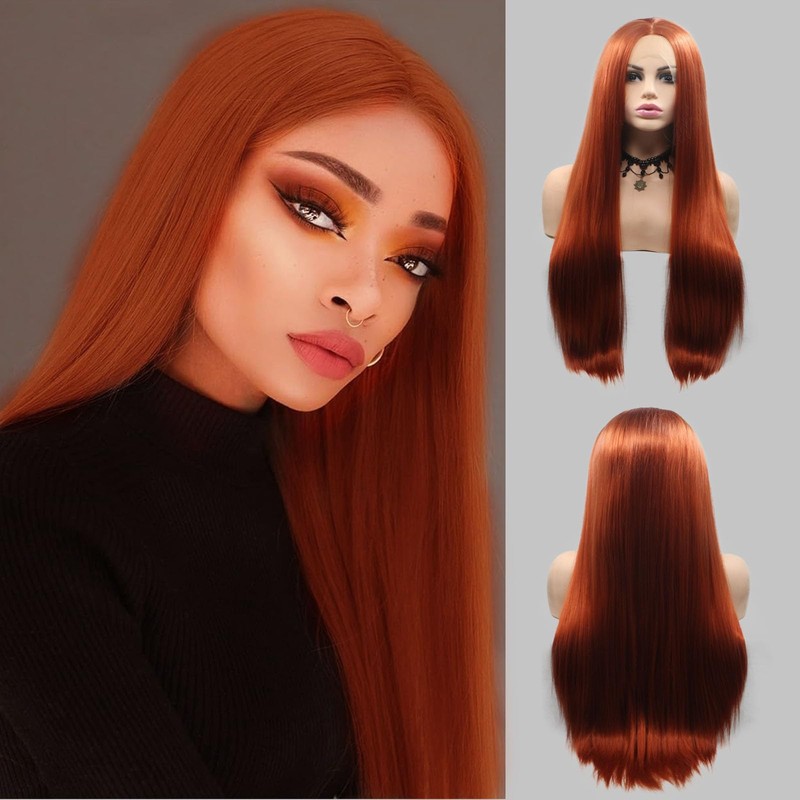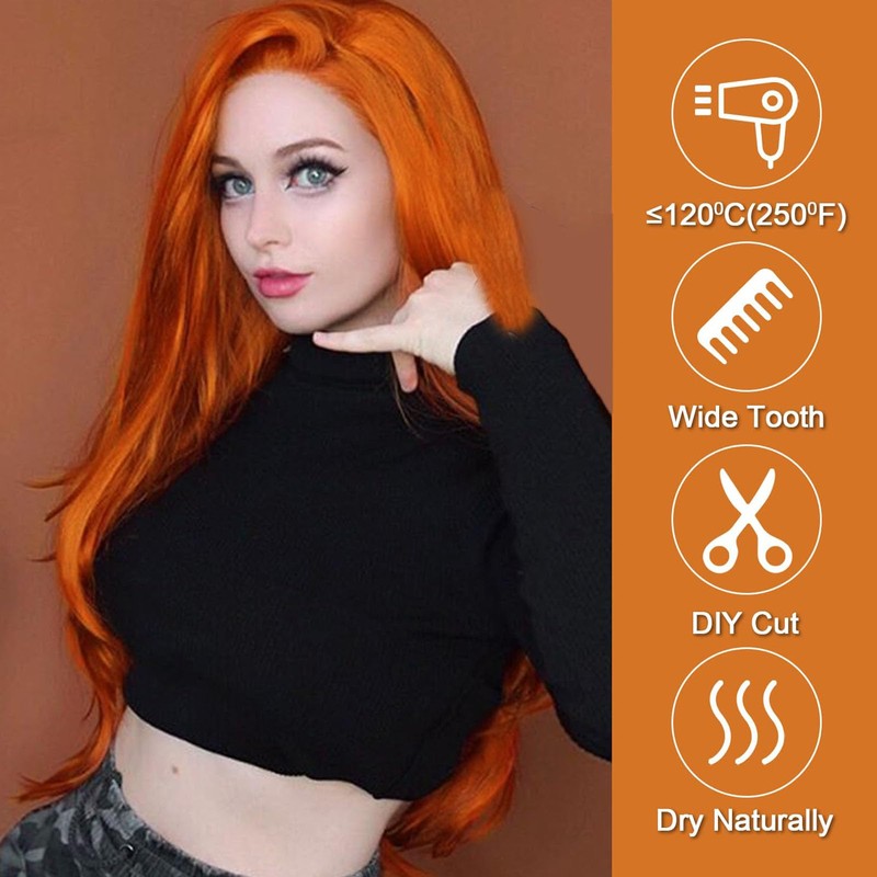 - 【Package Included】1 Ginger Natural Straight Lace Front Wig + 1 wig cap (You can cut or trim the length or style of the orange wig into any style you like)