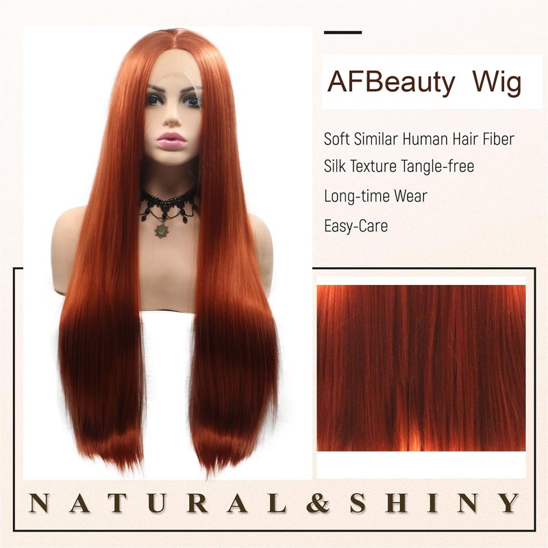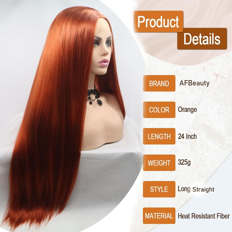 AFBeauty Ginger Wig Synthetic Lace Front Wigs Pre Plucked Hairline Straight Ginger Lace Front Wig Long Orange Copper Real Hair Wig Glueless Lace Wig Heat Resistant 24inch Cosplay Party Wigs