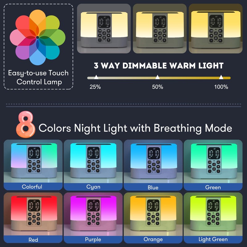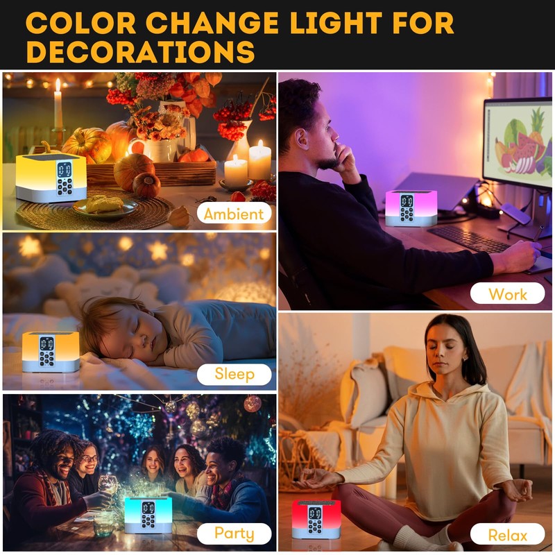 AFEXOA Multifunctional Bluetooth Speaker Sound Machine with 30 Soothing Sounds & Sleep Timer, Touch Sensor Lamp and Night Light, Digital Alarm Clock