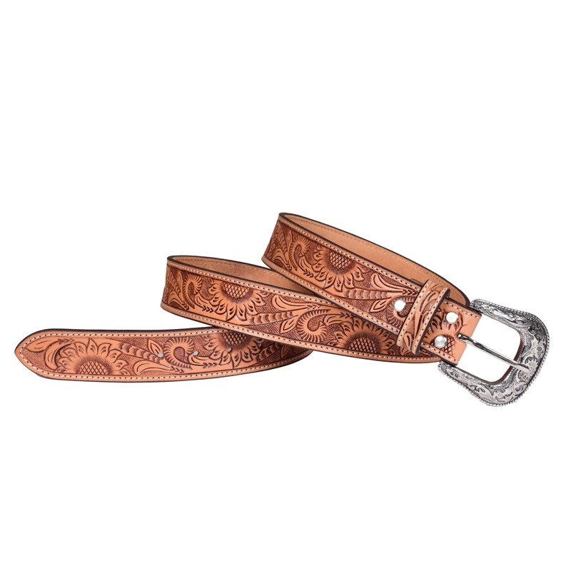 Affilare Tooled Genuine Leather Sunflower Design Western Belt With Removeable Buckle 30WE001