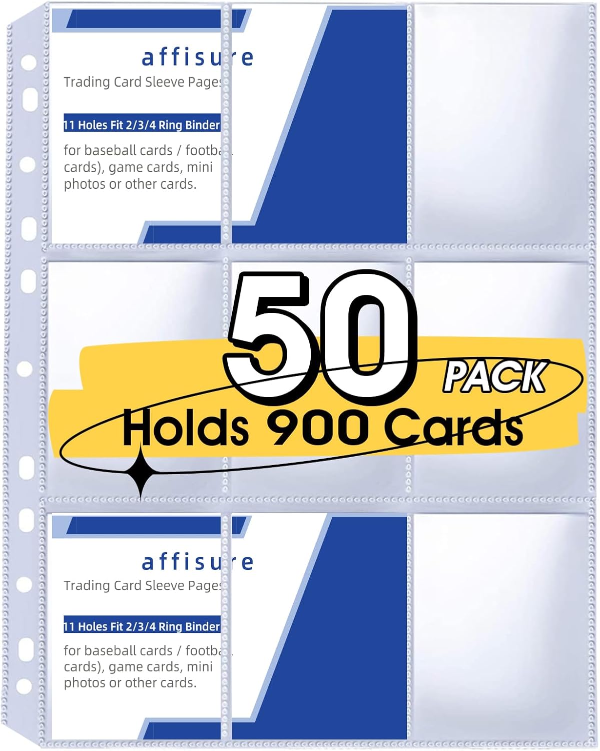 Affisure 9 Pocket Card Sleeves, Holds 900 Cards, Trading Binder 50PACK, Clear