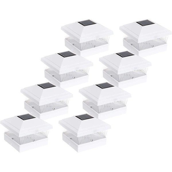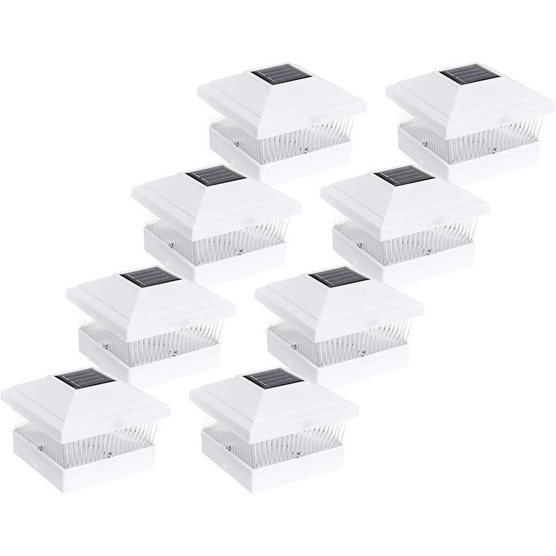 AFFORDABLE Outdoor Garden 8 Pack White Solar Power LED Pathway Deck Dock Patio Fence Post Light for 5x5 PVC Vinyl Posts…