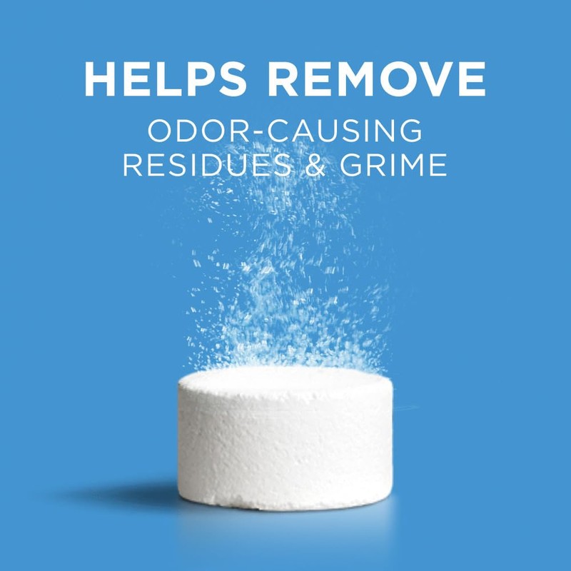 Product DescriptionAffresh? washing machine cleaner deep cleans even where you can't see to help remove odor-causing residues and build-up that can form in machines over time. Specially formulated to dissolve slowly throughout the entire wash cycle, affresh? washer cleaner is an easy and effective way to clean your washing machine pump and valve, behind the basket and drum, wash tub, agitator or filter, and drain hose. Just drop one tablet in an empty washer and run on a normal hot or Clean Washer cycle for a fresh, clean appliance. Made with U.S. EPA Safer Choice certified ingredients, the time-release tablets are septic safe and can be used with top or front load washing machines, including HE. Use monthly for optimal results.From the ManufacturerAffresh Washer Cleaner removes and prevents odor-causing residue that can occur in all washers. While bleach only kills odor-causing bacteria leaving behind the detergent residue, Affresh Washer Cleaner uses surfactant chemistry to remove the root problem. Affresh cleaner is a formulated, slow-dissolve, foaming tablet that gets under residue, breaks it up, and washes it away leaving the washer smelling fresh and clean. Simply place one tablet in the wash basket (without clothes) and run a Normal Cycle (hot option) or Clean Washer Cycle. Affresh brand is safe on septic tanks, and safe for all washer components. Use once a month to keep your machine fresher and cleaner. Package includes six tablets.