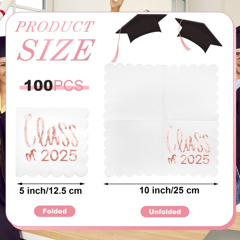 • Class of 2025: to celebrate in style, our "Class of 2025" cocktail napkins add a personal touch to your grad parties, designed with scalloped edges; The size is large enough to easily clean small messes and still maintain their sturdiness, unfolded size is about 9.84 x 9.84 inches/ 25 x 25 cm, folded size is about 5 x 5 inch