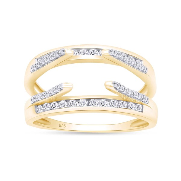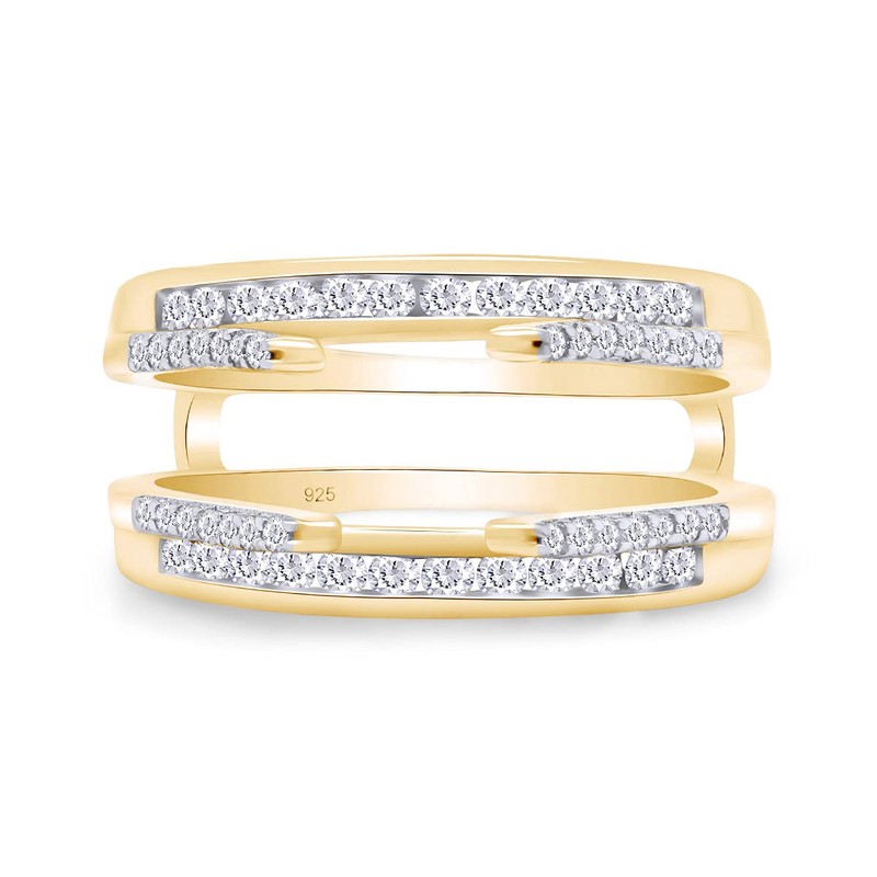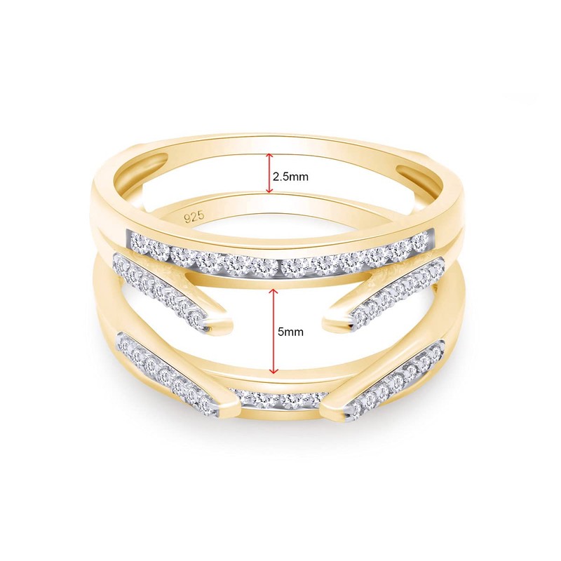 AFFY 0.80 Carat Round White Cubic Zirconia Solitaire Enhancer Guard Ring 14K Yellow Gold Over Sterling Silver Ring Size-8