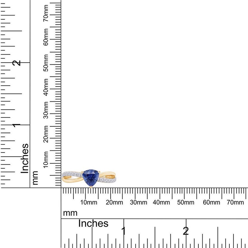 - This Infinity Promise Ring Adds A Touch Of Nature-Inspired Beauty To Your Look In 14k Yellow Gold Over Sterling Silver . Makes a Standout Addition to Your Collection With Trillion & Round Shape Simulated Tanzanite & White Sapphire (1.25 Cttw)