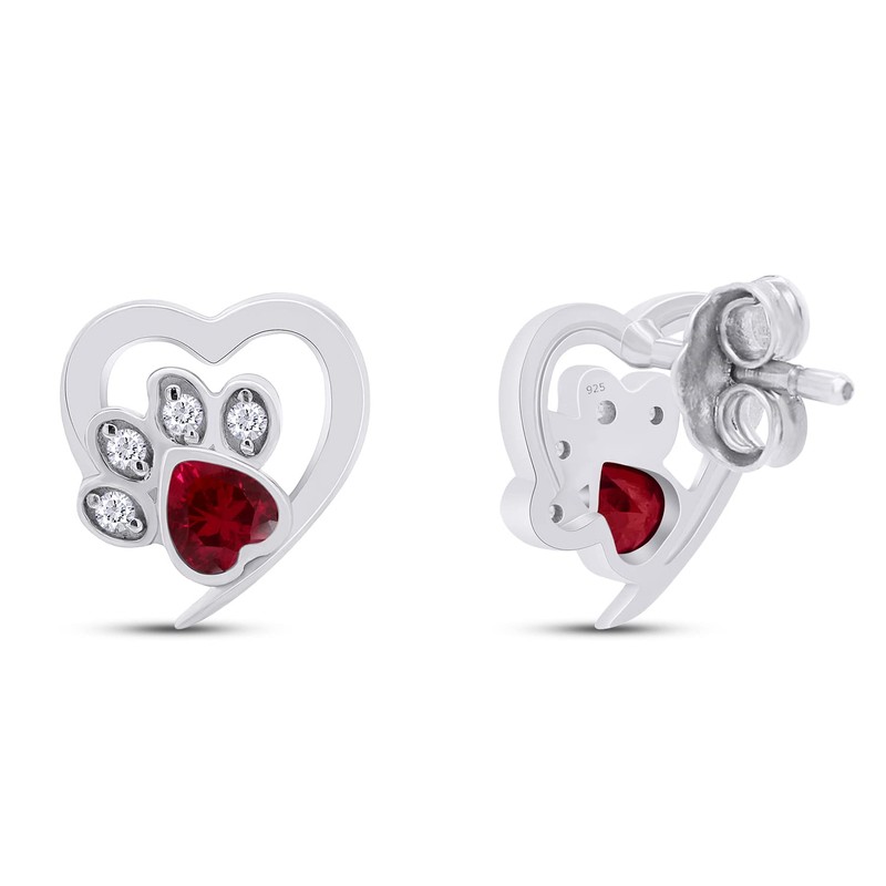 - An Entrancing look, this Cat Puppy Paw Print Pet Animal Heart Stud Earrings Adds A Touch Of Nature-Inspired Beauty To Your Look In 14k White Gold Over Sterling Silver. Makes a Standout Addition to Your Collection With Heart And Round Cut Simulated Ruby