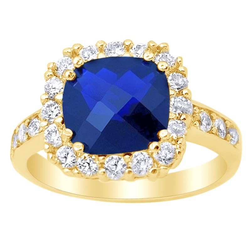 AFFY Simulated Blue Sapphire & Cubic Zirconia Engagement Ring in 14k Yellow Gold Over Sterling Silver Ring Size - 7.5