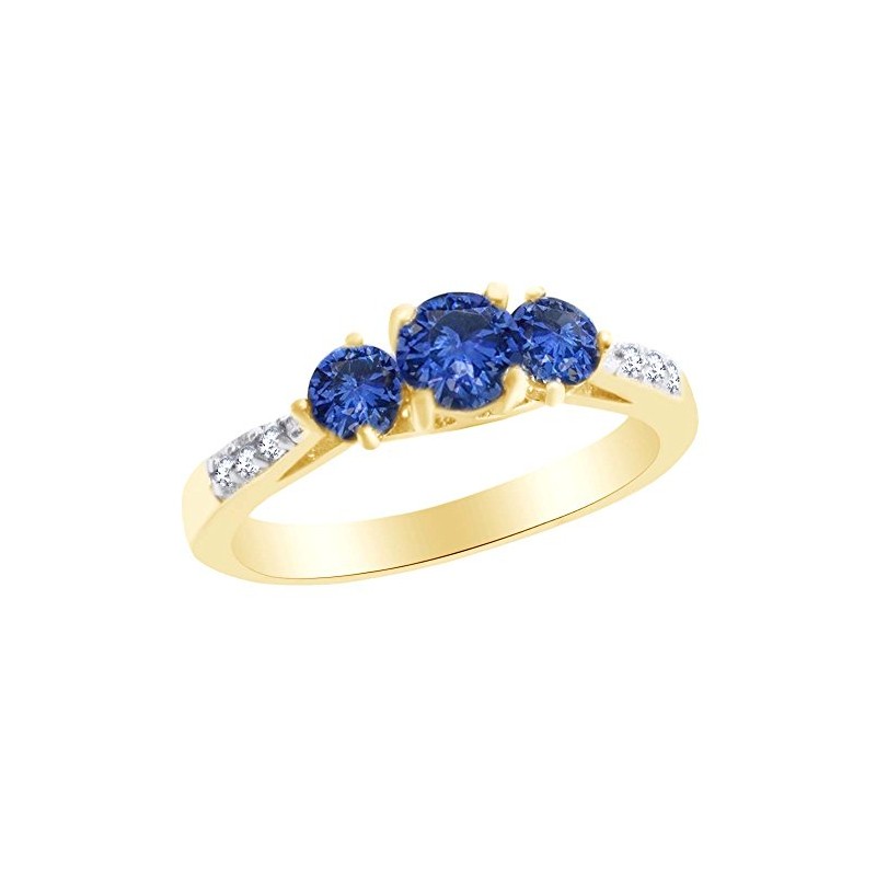 AFFY Simulated Blue Tanzanite & White Cubic Zirconia Three Stone Ring in 925 Sterling Silver (1.00 cttw) Ring Size-8