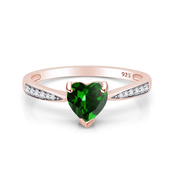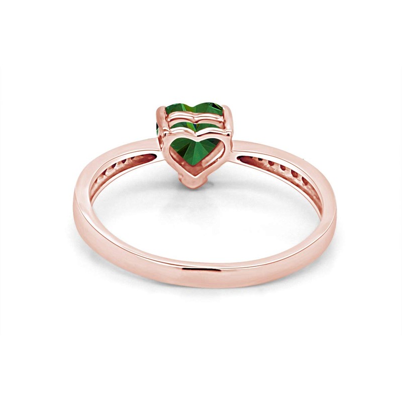 - Adds A Touch Of Nature-Inspired Beauty To Your Look Solitaire Heart Promise Ring In 14k Rose Gold Over Sterling Silver Makes a Standout Addition to Your Collection With Heart Shape Simulated Emerald & Round White Cubic Zirconia