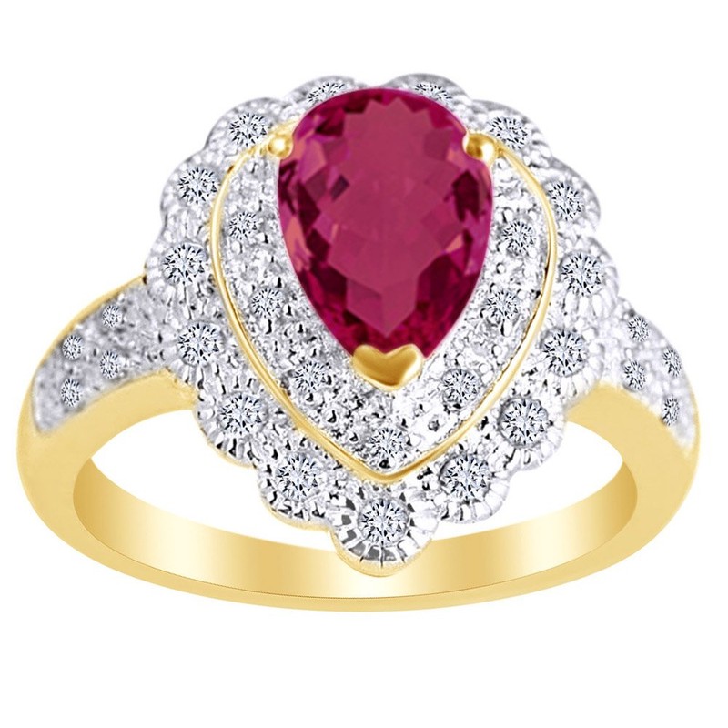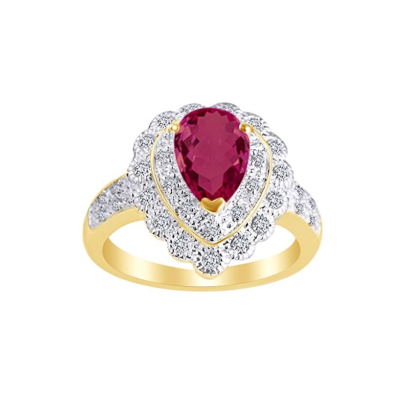AFFY Simulated Pink Sapphire & Cubic Zirconia Engagement Ring in 14K Yellow Gold Over Sterling Silver (1 Cttw) Ring Size - 5
