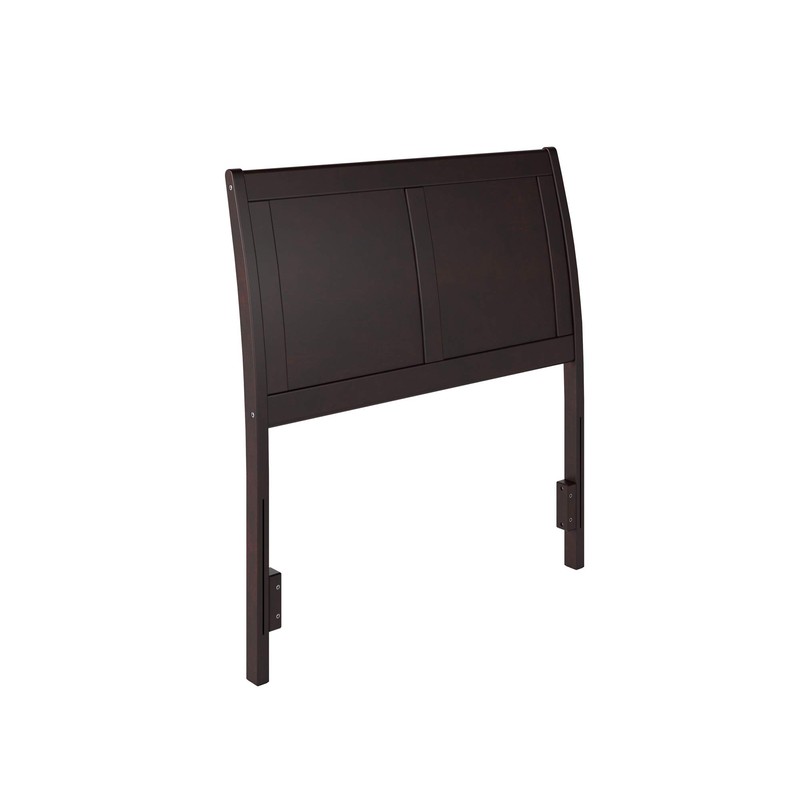 The modern sleigh design of the Portland Headboard by Atlantic Furniture is sure to fit into any decor. Inset panels are framed by beautiful curved wood posts.