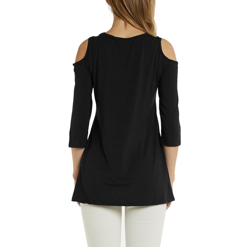 Afibi Womens Cold Shoulder 3/4 Sleeve Swing Tunic Tops For Leggings (XXX-Large, Black)